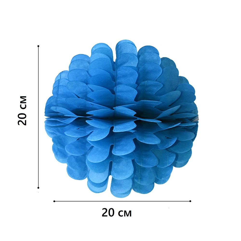 Бумажное украшение Цветочный шар-соты 20 см, синий