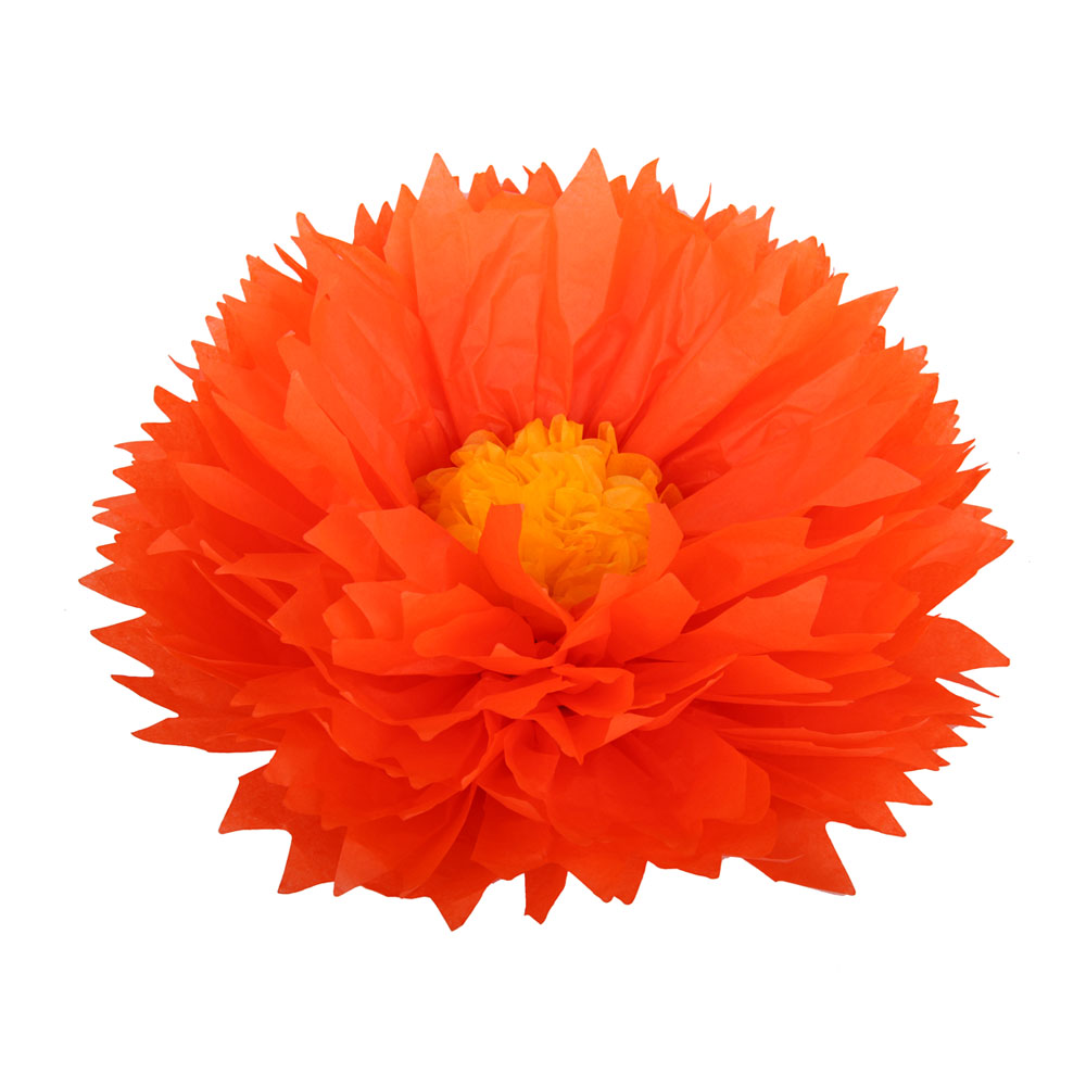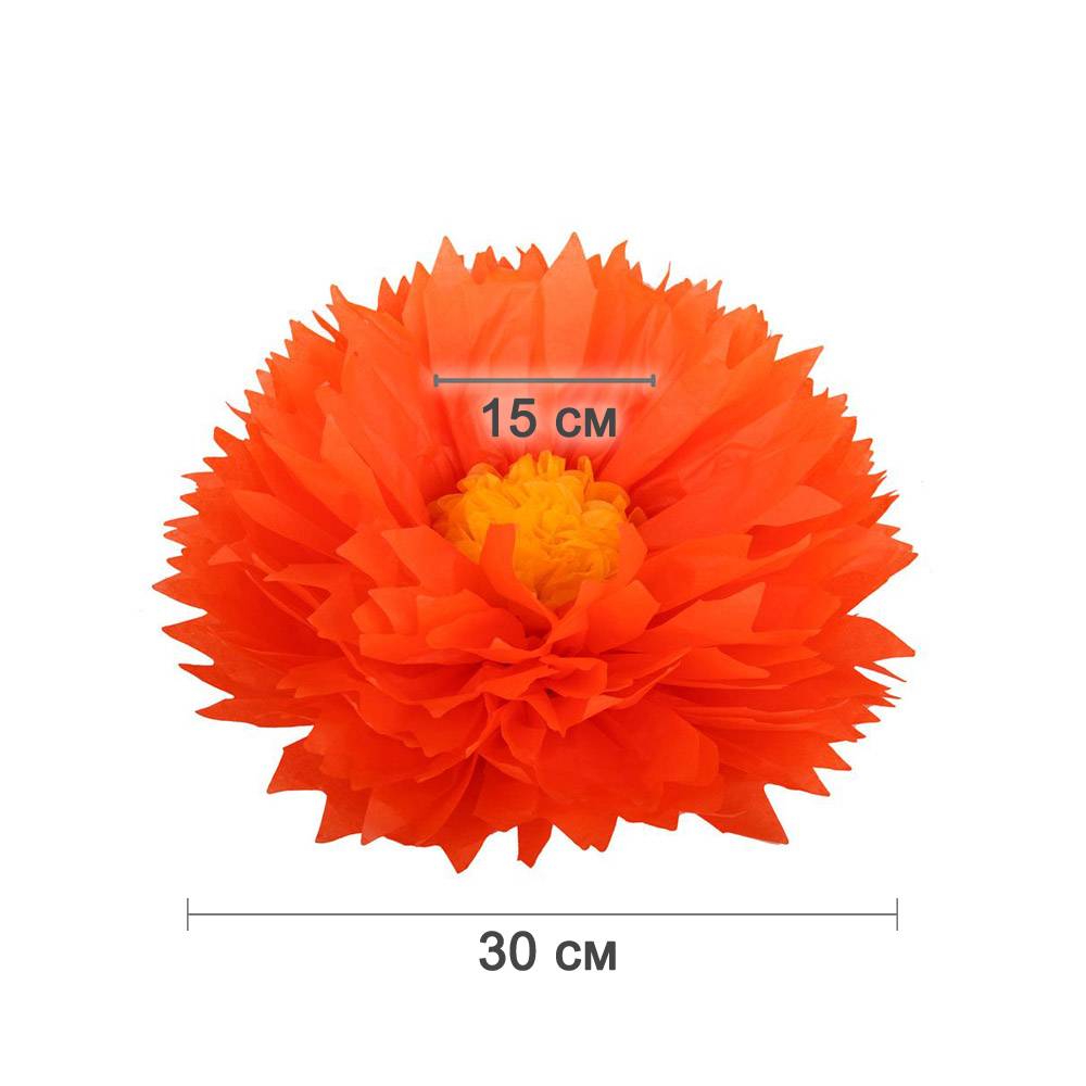 Бумажный цветок 30 см оранжевый+ярко-желтый