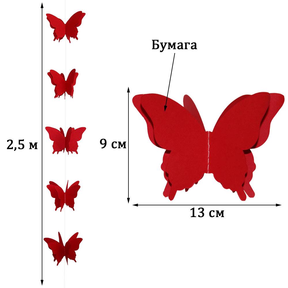 Гирлянда "Бабочки" 13х9см 2,5м, красный