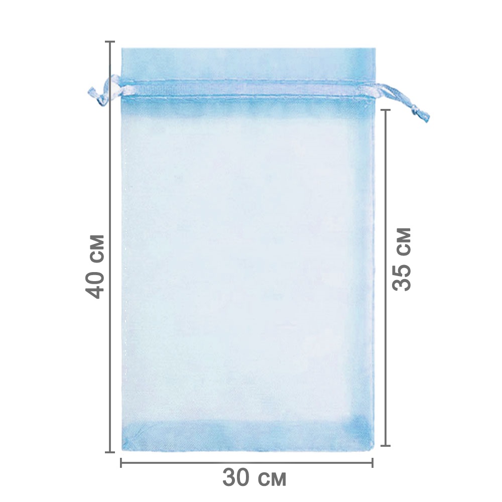 Мешочек из органзы 30 х 40 см — практичный аксессуар для упаковки крупных подарков и хранения предметов. Полупрозрачная ткань подчёркивает содержимое и придаёт праздничный вид.