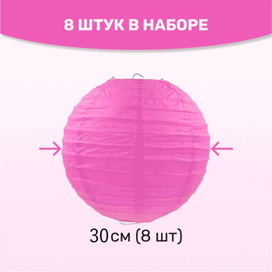 Комплект подвесные фонарики 30 см х 8 шт, малиновый
