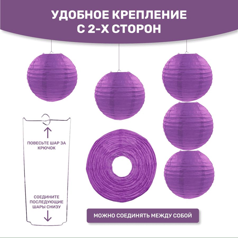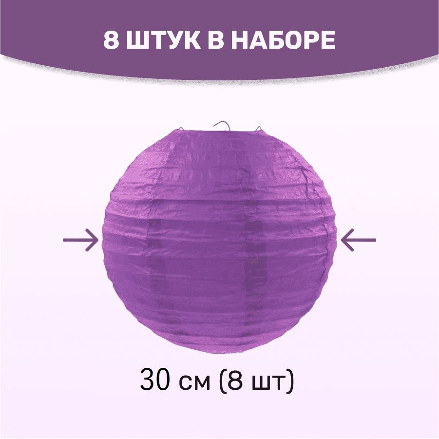 В комплект входит 8 бумажных фонариков и лента атласная.