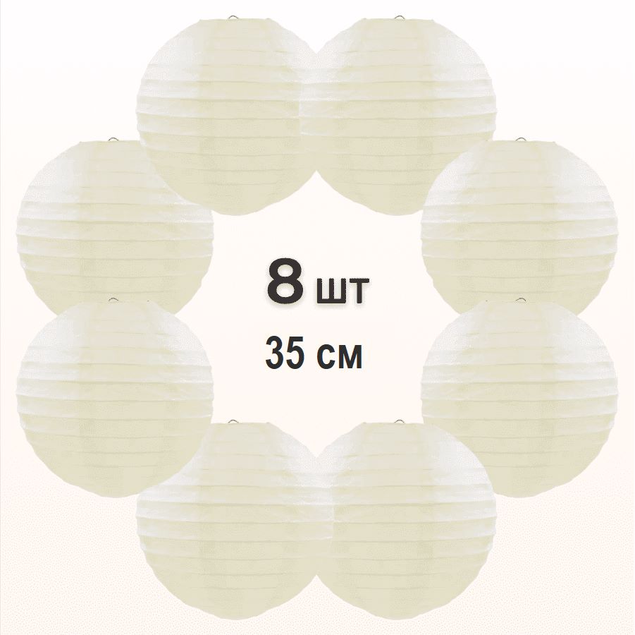 Комплект подвесные фонарики 35 см х 8 шт, айвори