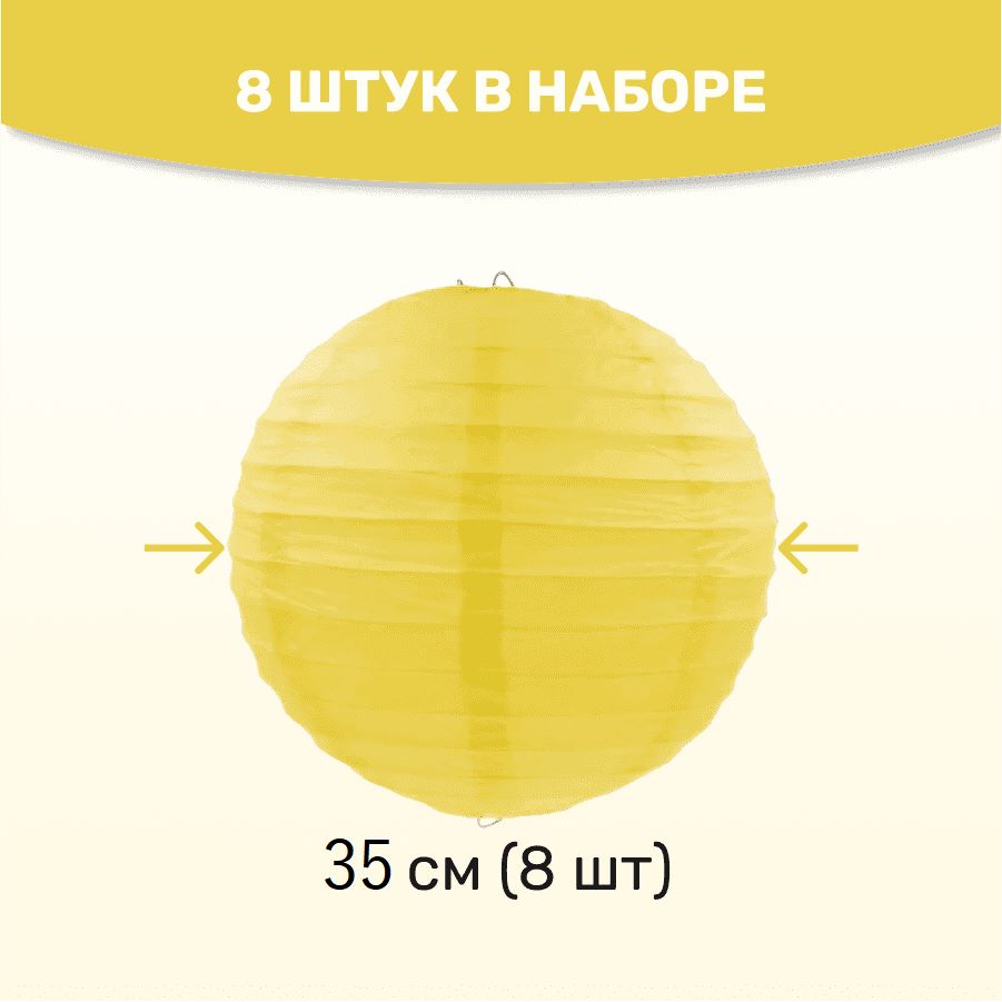 Комплект подвесные фонарики 35 см х 8 шт, желтый