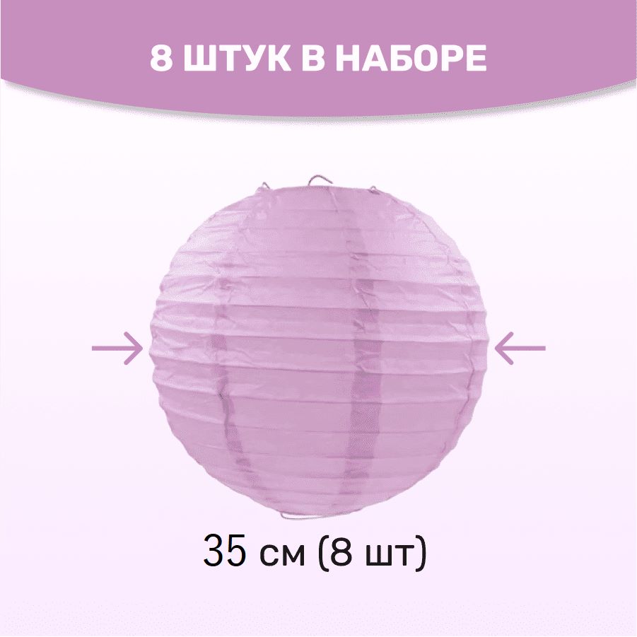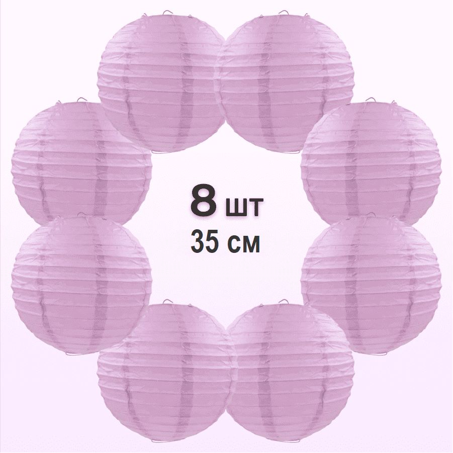Комплект подвесные фонарики 35 см х 8 шт, светло-сиреневый
