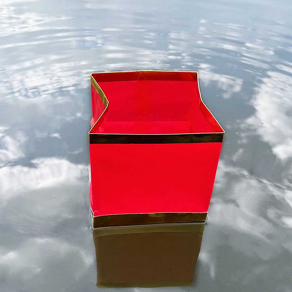 Плавающий фонарик "Куб" 11х11 см золото+красный