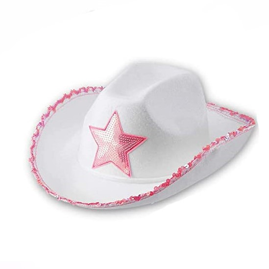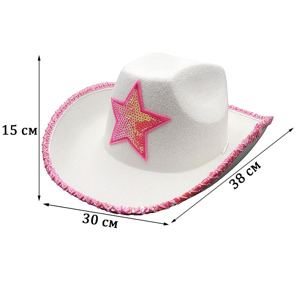 Шляпа ковбойская с блестками и звездой, белый