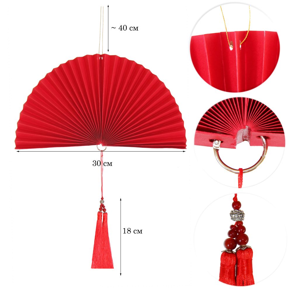 Веер-гармошка с кисточкой, 30 см, красный — 1 шт.
